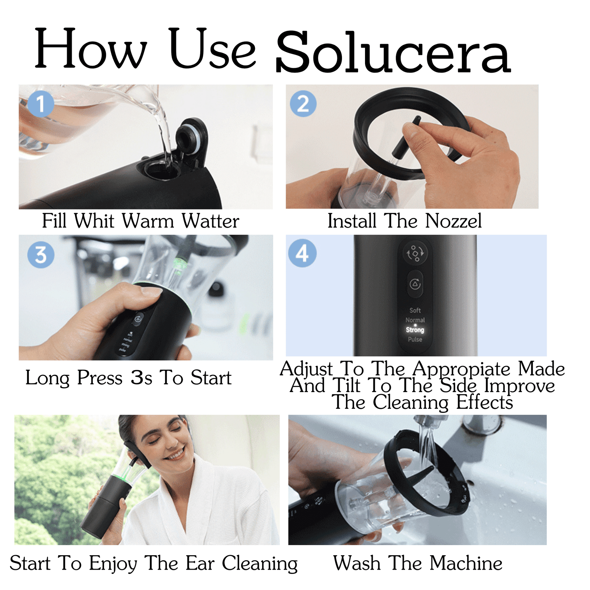 From its gentle water flow to eardrum protection , Solucera was made to give you peace of mind — and squeaky-clean ears.