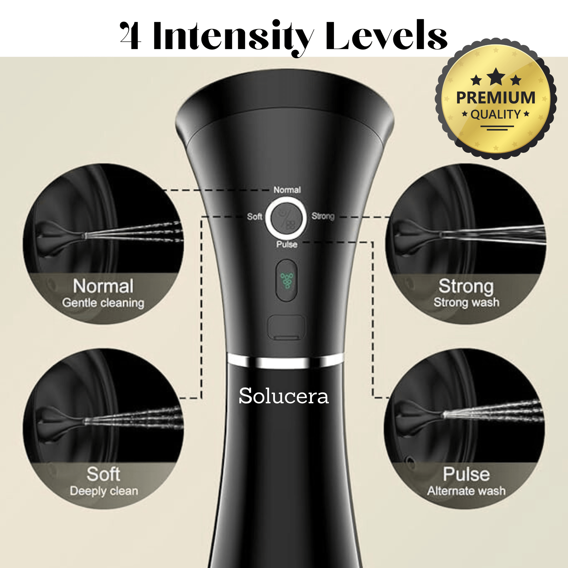 With four levels of water pressure and medical-grade silicone tips, Solucera is designed to remove compacted earwax without damaging the delicate ear canal.